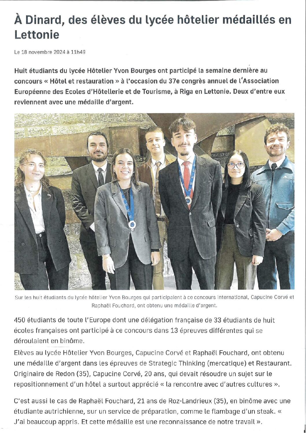 A Dinard, des élèves du lycée hôtelier médaillés en Lettonie