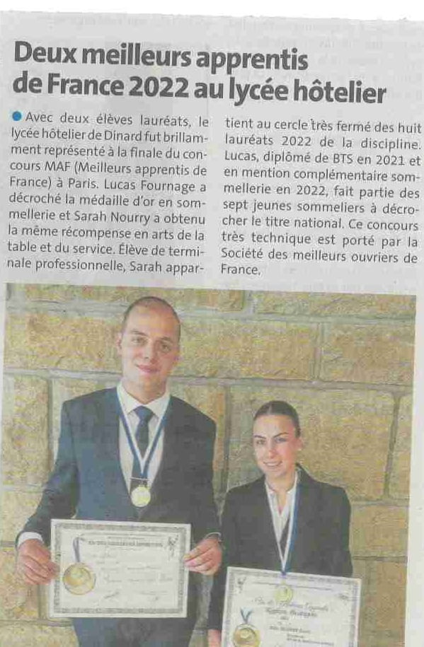 Deux meilleurs apprentis de France 2022 au lycée hôtelier.