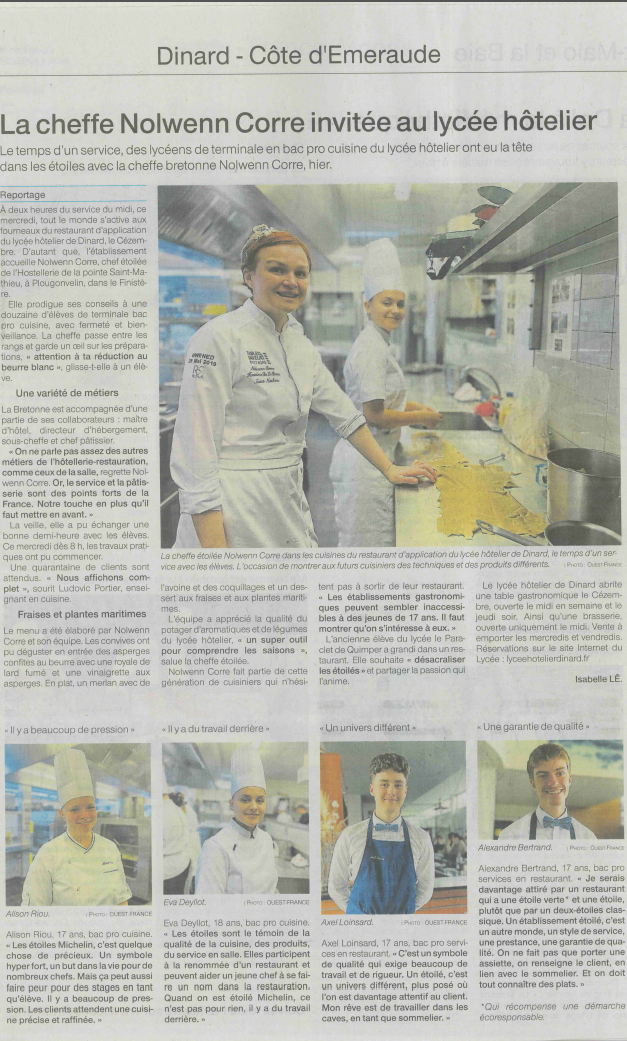 La cheffe étoilée Nolwenn CORRE invitée au lycée Hôtelier